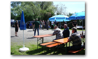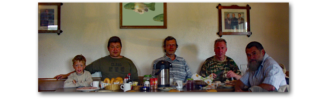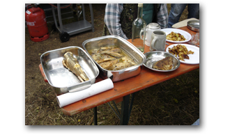 Freitag 23:00 Wettbewerbsschluss. W. muss Samstag weg; gewinnt mit 23 Fischen, J. 21, ich 17, B. 13, M. 5. Bekomme trotzdem einen Pokal, in memento Mosella. Samstag Frühstück in der Angelhütte, liebevoll von Dietmar serviert.