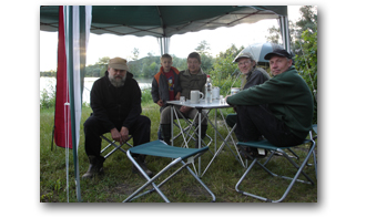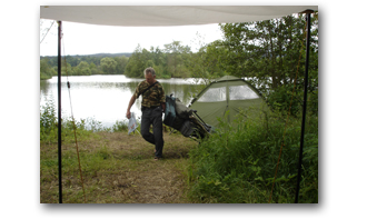 Nach dem Frühstück Abbau Teil 1, B.'s Bude und das Küchenzelt. Stellen dafür meinen Pavillion auf. Alle mit I. in Redwitz essen, W. fährt, wir angeln noch. Nach dem Sonntagsfrühstück Abbau Teil 2. 10:00 bis 14:00 Uhr, gefühlte 10 Stunden, dann ist alles verstaut. Dusche bei B. im Schwimmbad, gegen 19:30 vor der Haustür. Müde aber glücklich. - Die Schleie? Vergiss doch diese blöde Schleie!