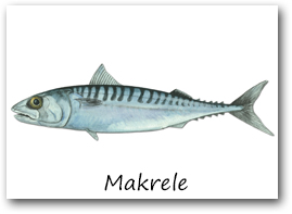 Der Fang ist reichlich, sechs Makrelen, H. gleich zwei auf einmal, sowie einen stattlichen Seelachs, zwei Seelachse vom W., und u.a. einen Dorsch und einen Wittling von M. Ich habe meine Leine mit M.'s Vorfach verknotet und nun reichlich mit dem Entwirren einer Perücke zu tun, da bleibt keine Zeit für Fisch.