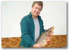 Abreisetag, aber erst wird noch bis zum Mittag geangelt. Ich habe schon gemütlich gepackt und stehe kurz vor der Abfahrt, als Bernie ganz unerwartet noch einen tollen 9 Pfund Karpfen zur Mittagszeit an Land zieht. - Wohlgemerkt, wir sind zum Raubfischfischen hier!!!!