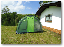 Die Eisheiligen sind durch, jetzt kann es nur noch besser werden. Unser Angelgewässer empfängt uns am frühen Nachmittag mit strahlendem Sonnenschein und lustigen Schäfchenwolken. Uns, das sind D., M., W. mit Conny dem Cocker, J., B. und ich. B. hat in der letzten Woche die Wiese gemäht und das Mannschaftszelt aufgebaut, seine neue leuchtend grüne Tuchvilla steht auch schon.