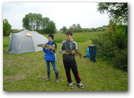 Dauerregen und Matsch, das ist eine ziemliche Prüfung für Mensch und Material. Wir bestehen sie. Nicht zuletzt Dank der guten und abwechslungsreichen Verpflegung. Es gibt Kotelett und Schnitzel, Wels, Barsch, Karpfen, Aal (die haben W. und J. für uns gefangen) und Hecht, gebraten und geräuchert, Kartoffelsalat (von B.), Sahnequark, Weißwurst und Schäufala (von der Clubhaus-Chefin vor dem Champions-Leage-Finale sach- und fachgerecht zubereitet).