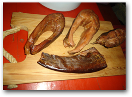 Der Räucherfisch ist B. besonders gut gelungen und so reichlich, dass wir drei Tage davon essen können. Am Abend unserer Pokalfeier ist er die Hauptmahlzeit und W. die Hauptperson. Sein erster Wels war nicht zu schlagen.