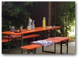 Die Pergola hat sich ein weiteres Mal bewährt und wenn B. auch dem Mannschaftszelt nachtrauert, es bleibt immer noch genug zum aus- und einräumen und ich bin für jedes Teil dankbar, das ich nicht bewegen muss. Im nächsten Jahr wollen wir es allerdings einmal im Sommer versuchen, dann will uns Ma. wieder begleiten. Von uns Männern braucht da wohl keiner auf den Pokal zu spekulieren!